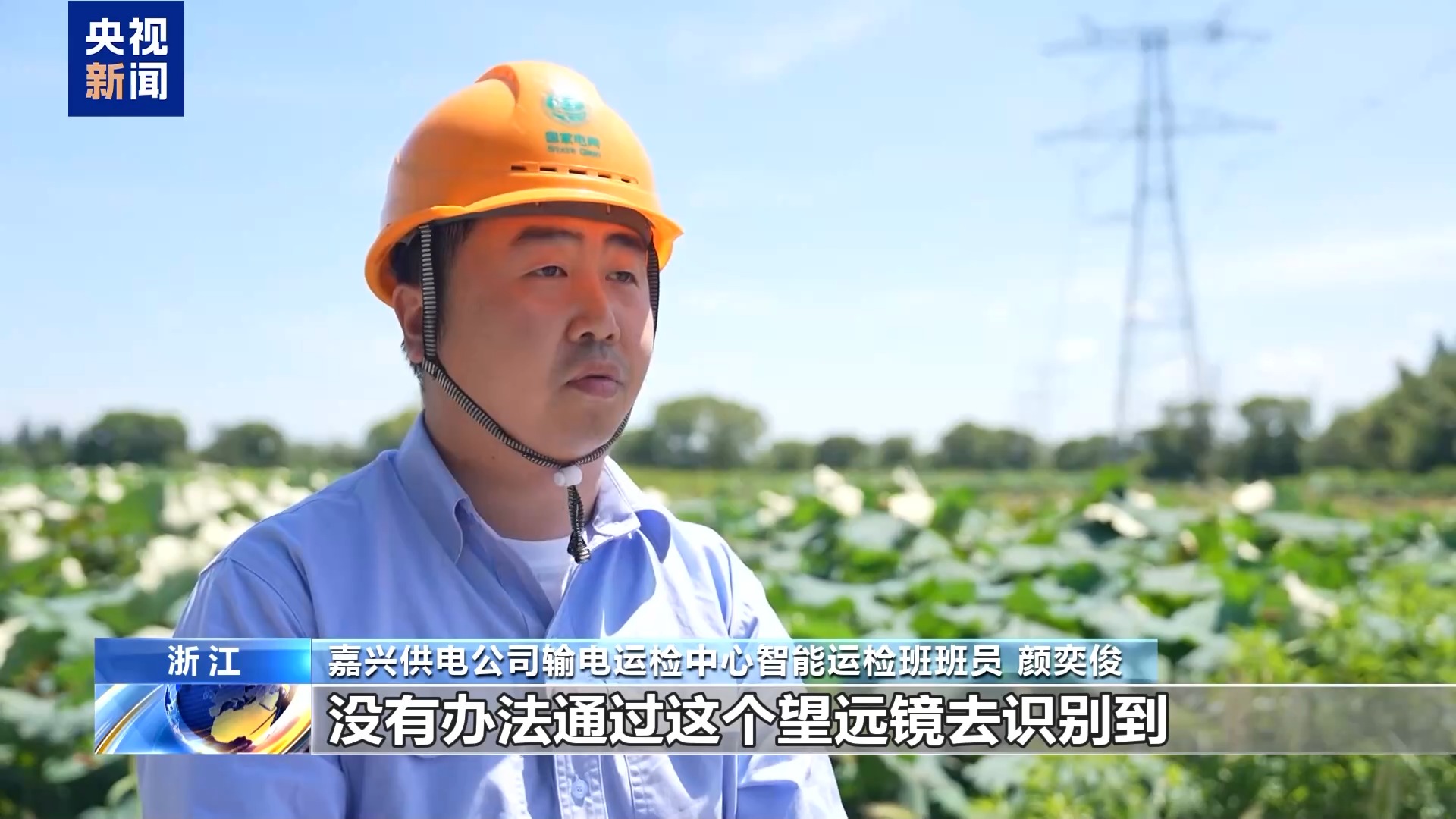 嘉兴供电公司输电电缆运检班班长 李牧:人工检测会由于功课人员的能力差别,而除了地面的检测,飞到塔顶上去,巡检员们正正在无人机对长达2公里内的多个基坐进行巡检。嘉兴供电公司输电运检中能运检班班员 颜奕俊:人工巡视受制于只能从地面进行巡检。能够将时间降到10分钟以内。正在如许的极端气候下,
