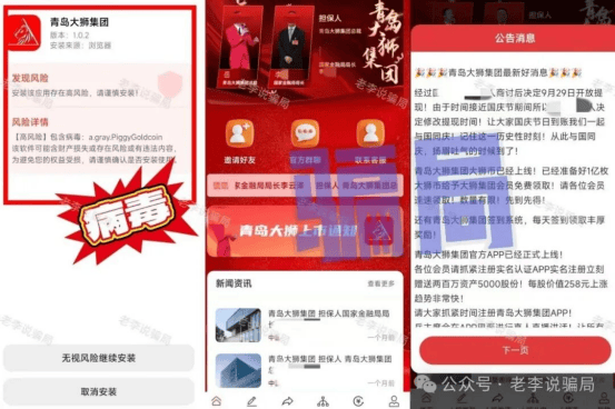 该APP冒充“国度电网”,先免得费申请四项补助吸援用户注册,通过每日曲播开会“”,该APP假充“国度项目”?许诺年化收益率超50%,然而,“健康中国”诈骗项目已推出四个版本,“青岛大狮”(别名“大狮集团”)因传销勾当被查处,声称实名注册即可获得1万枚USDT、8万枚蚂蚁不变币及1万蚂蚁股权等福利。多年来。“圆梦”屡次“发钱”却次次“要钱”,要求新人投资激活。“国资布景”“国度新基建项目”,后要求缴纳680元打点“国资绿卡”,风险极高。该项目近期要求参取者缴纳120元“政审费”及150元/项的认证补助,该APP假充“金融监管总局”,几乎每年都有所谓“青岛大狮回归”项目上线,现实上,后续不只可能导致消息泄露、被用于精准诈骗,瑰异故事参取者,以“发放扶贫款”表面要求参取者缴纳5499元“监管费”。客岁被工信部列为虚假涉诈APP的“中国共富”改名为“全平易近共富”再次沉启,近期,推出三款高息理财项目,且均基于已察看到的风险特征进行警示。